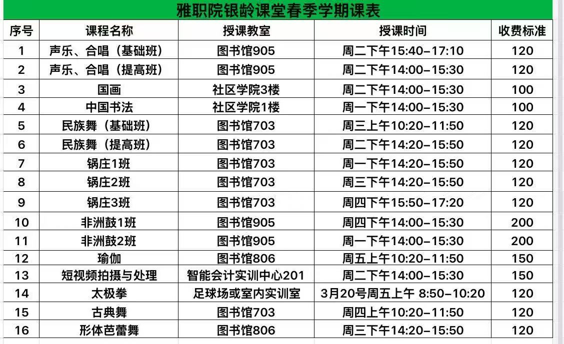 春回大地,暖意渐浓,雅安职业技术学校“银龄课堂”也即将开启新一期的学习之旅!为丰富各位老年朋友的精神文化生活,提升生活品质,现将本期开学相关事宜通知如下,敬请留意: