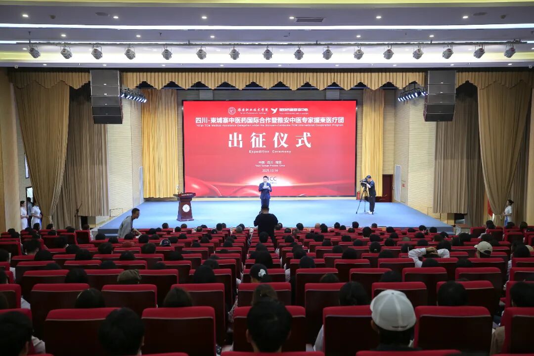 10月14日下午,“推进中医药高质量融入‘一带一路’建设——四川—柬埔寨中医药国际合作项目暨雅安中医专家医疗团队援柬活动”出征仪式在我校举行。仪式结束后,由我校牵头组建的第五批次援柬医疗团队将启程前往柬埔寨暹粒省,执行为期15天的医疗援助与文化传播任务。