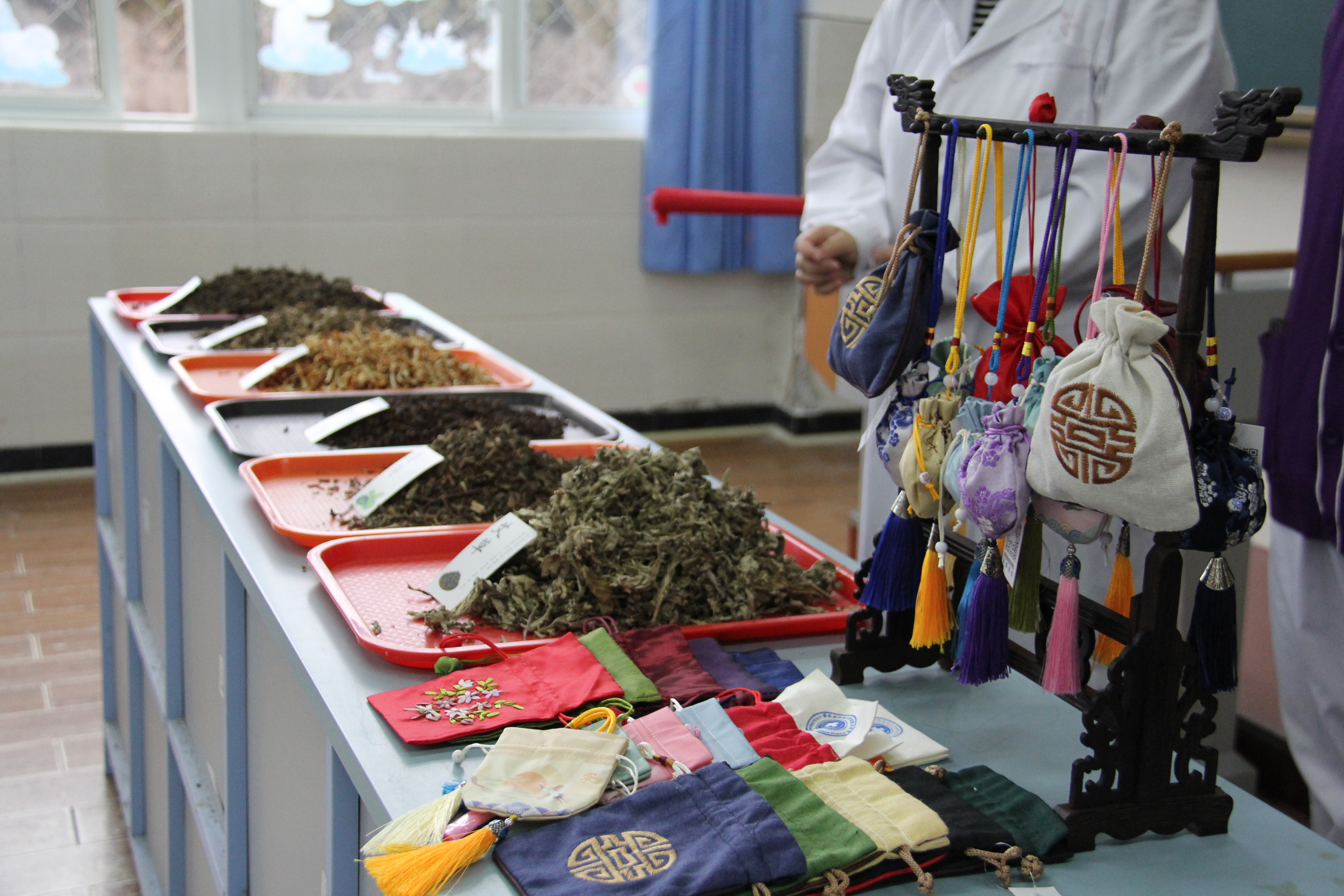 游园环节气氛热烈,学校师生代表积极参与到活动组织中,与孩子们一同做中医香囊,教孩子们认识艾草、薄荷等中药材品类和功效,了解中医药文化,并赠送香囊,在趣味实践中普及中医药文化知识,并将亲手制作的香囊赠予孩子们,让孩子们在欢声笑语中感受到来自社会的关爱与温暖。